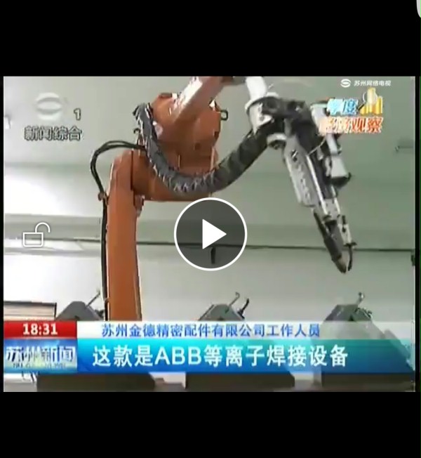 【西朗讯】2016年4月15日,苏州电视台1套《苏州新闻》报道投资3个多亿的苏州金德精密配件有限公司位于,苏州高新区的新厂开业,作为多年的合作配套供应商,SERANG西朗工业快速门配套机器人焊接房和车间物流快速出入口用门,在此恭喜金德精密开业大吉!