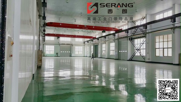 新工厂内部,行车与地面已完成,工业门及时配套,形成完整的车间装备体系,只待生产设备入驻。
